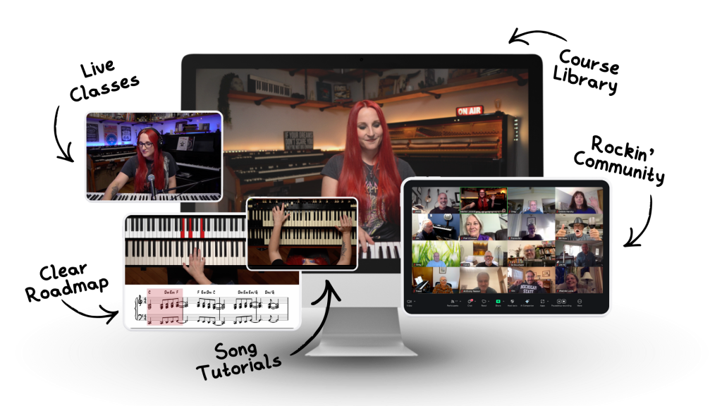 The Online Rock Lessons Membership is a structured piano training program for players who want to turn lead sheets into real music.